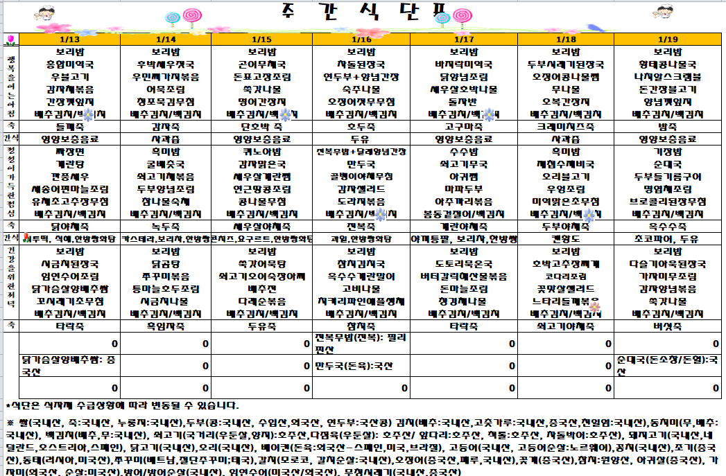 | 이전글 | 2025년 1월 1주차 식단표 | ||