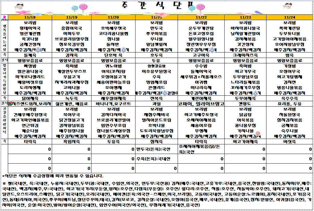 | 이전글 | 2024년 11월 2주차 식단표 | ||