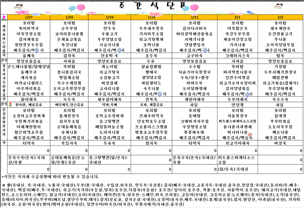 | 다음글 | 2025년 2월 1주차 식단표 | ||