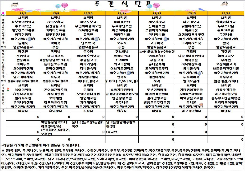 | 제목 | [영양서비스] 2025년 12월2주차 식단표 | ||