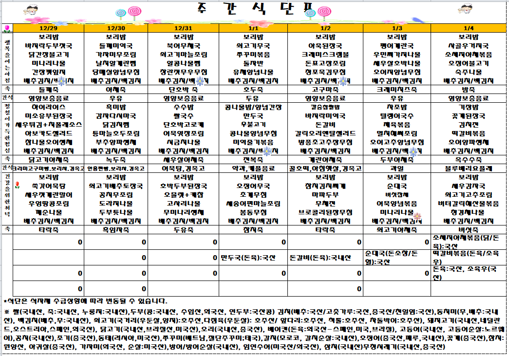 | 다음글 | 2026년 1월1주차 식단표 | ||