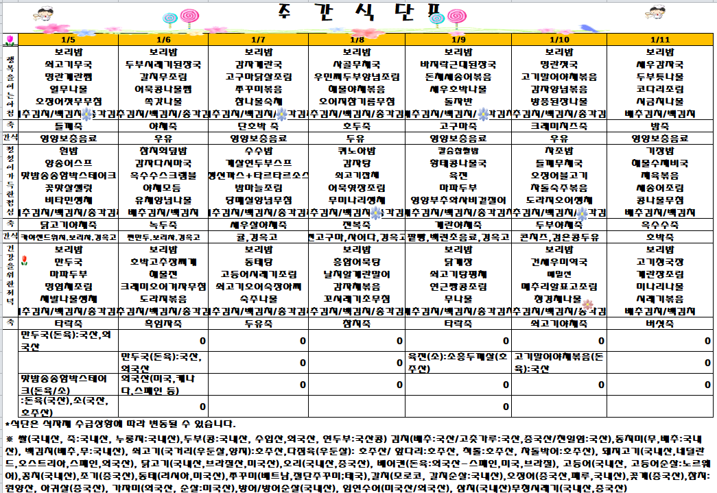 | 제목 | [영양서비스] 2026년 1월1주차 식단표 | ||
